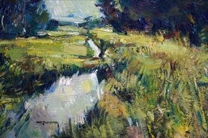 Door zijn docentschap voldoen zijn werken aan hoge eisen ten aanzien van compositie, kleurgebruik en penseelvoering.