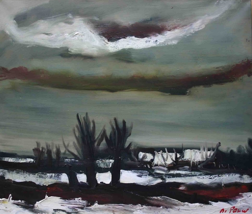Winterlandschap, olieverf op doek circa 60 x 70 cm