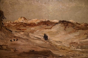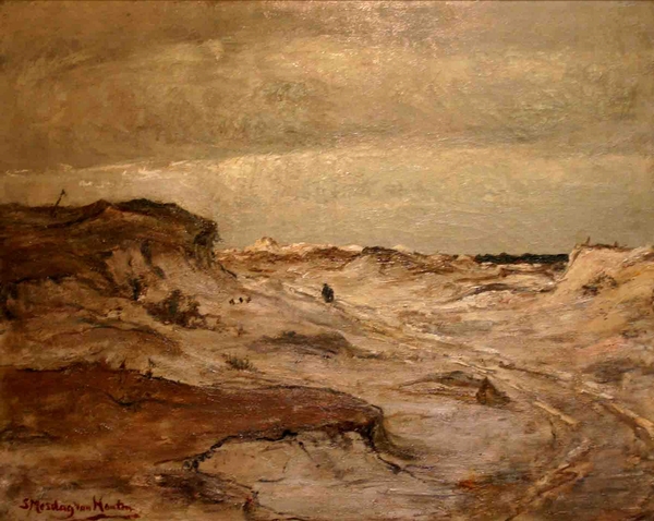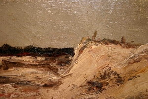 Het hier aangeboden duinlandschap toont haar specifieke manier van pasteus schilderen, terwijl het lichtgebruik realistisch en breed is volgens het voorbeeld van de Haagse School.