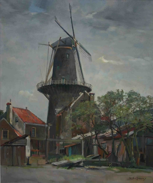 Molen te Spijkenisse, olieverf op doek, 50 x 60 cm