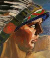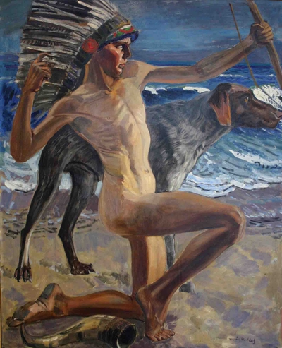 Schilderij "De boogschutter" afmeting circa 92 x 115 cm
