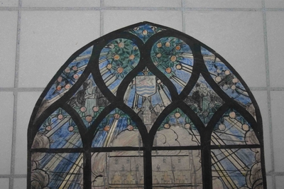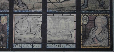 Ontwerp voor raam met stadhuis van Middelburg en wapen van Zeeland