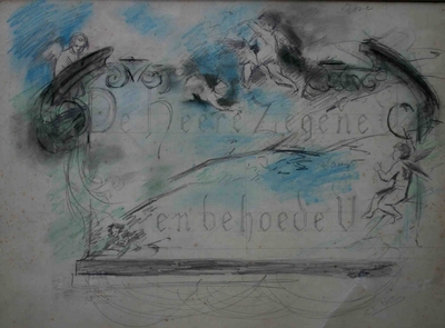 gemengde techniek op papier, afmeting circa 29 x 62 cm